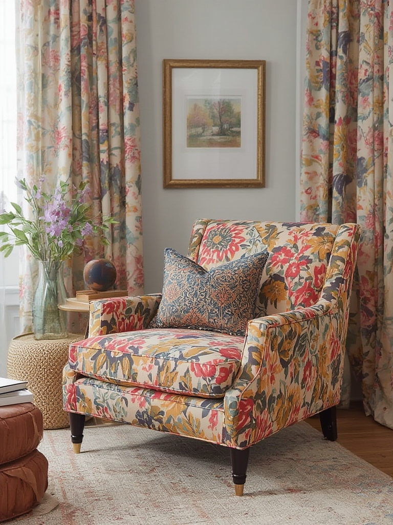 - Anchor the chair: Position it against a wall that shares a secondary color from the fabric (e.g., a muted teal accent wall).