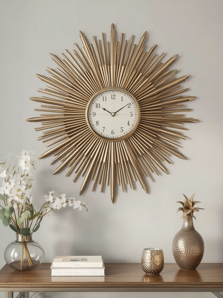 1. Mount the sunburst clock at eye level on a feature wall.