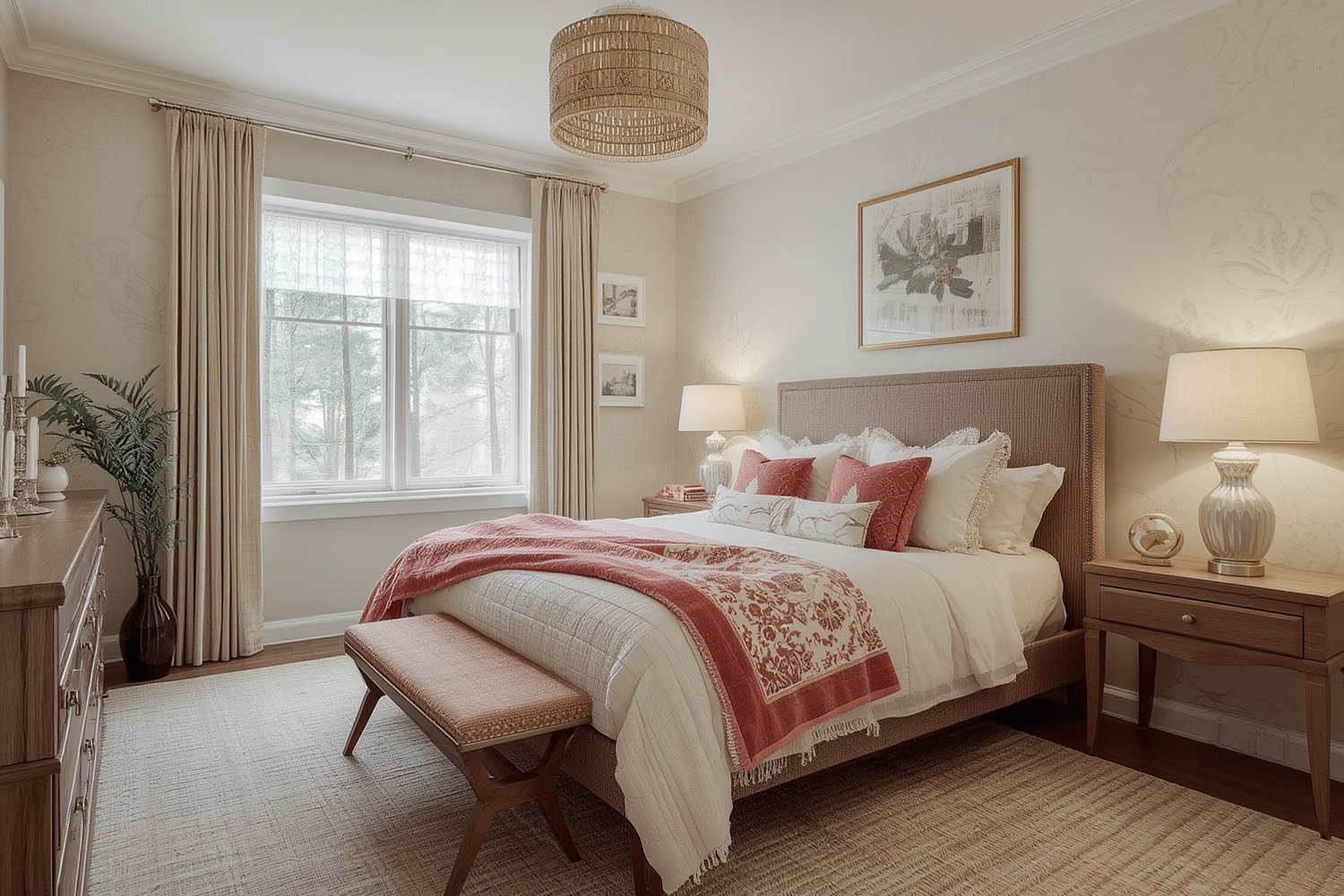 • Nightstands: Position one on each side of the bed for symmetry and storage.
