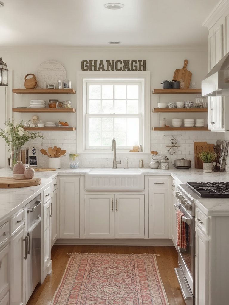 According to a 2022 Wayfair study, open shelving boosts perceived kitchen openness by 22 %. Install sturdy wooden shelves and display mismatched vintage plates, mason jars, and copper mugs. This creates visual interest while keeping everyday items within easy reach.