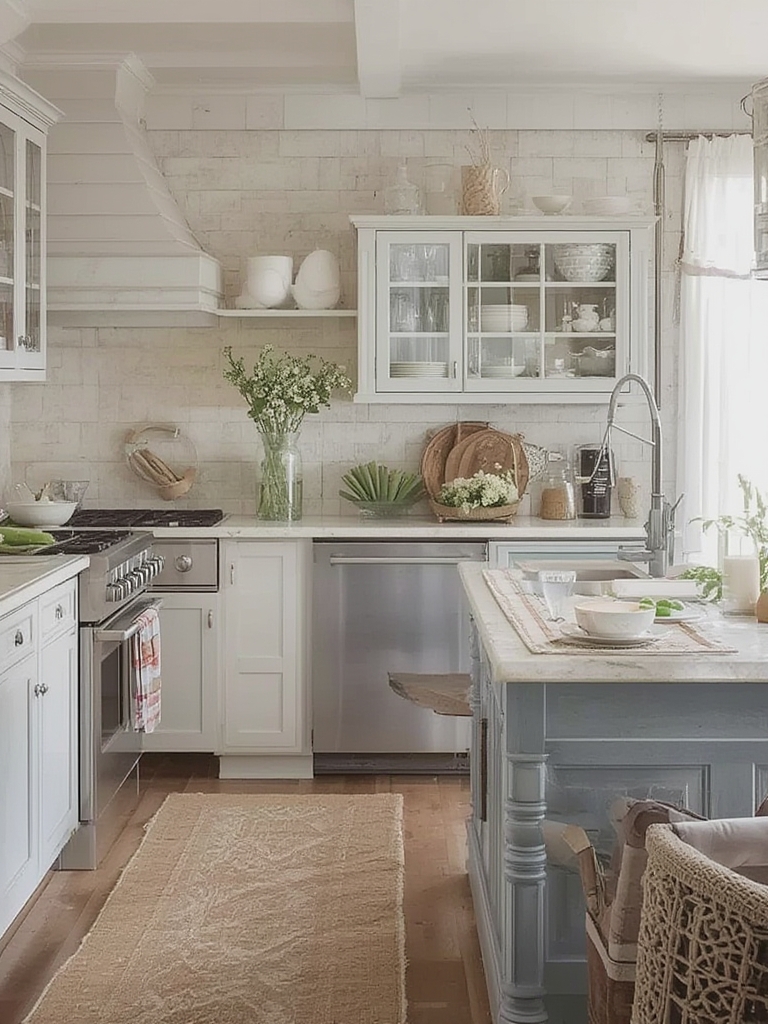Start with a base of cream or off‑white for walls and cabinets. Add accent hues of soft lavender, muted sage, or warm terracotta through backsplashes, textiles, and wall art. Data from paint‑trend reports (2023) indicate that “soft pastel accents” increase perceived spaciousness by 18%.