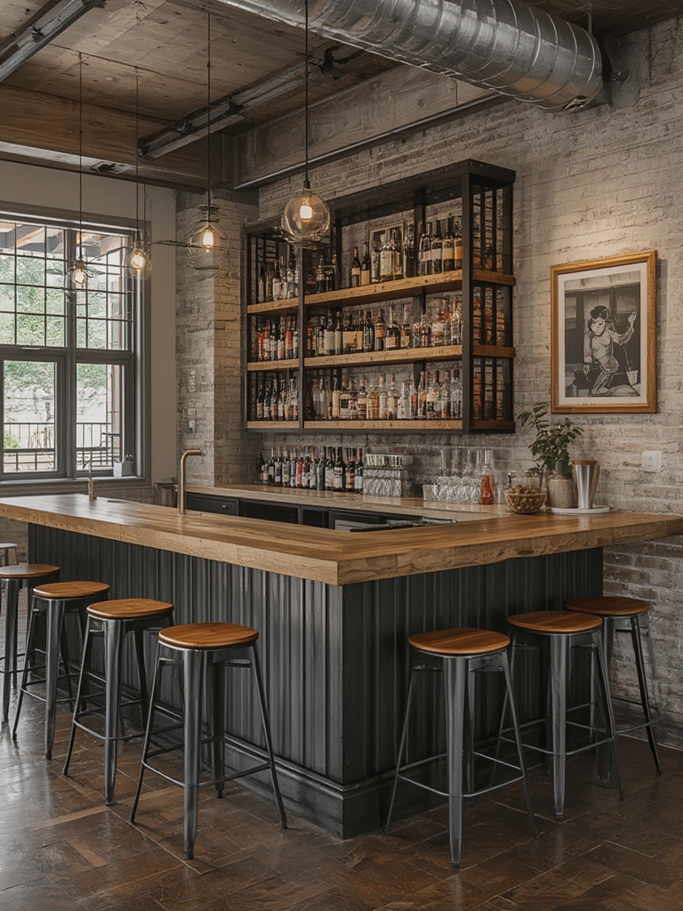 Add vintage signage, a chalkboard menu, or reclaimed metal bottle holders to reinforce the industrial vibe.