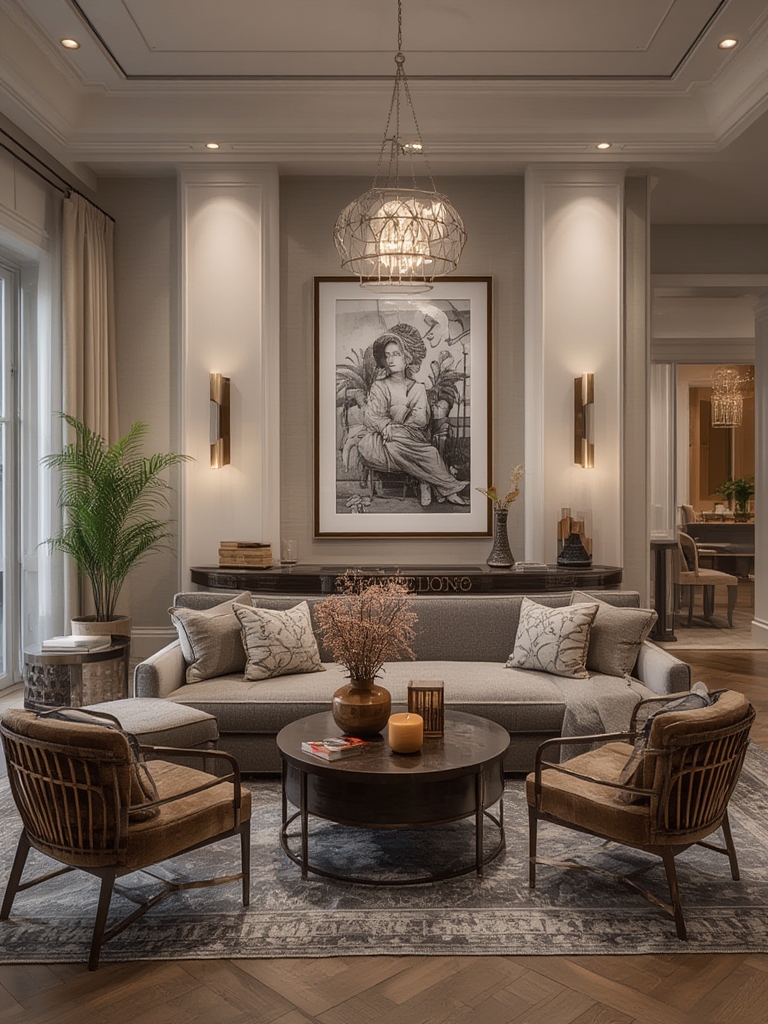 • Vibrant accent: Add a mustard‑yellow sofa or teal velvet armchair.
