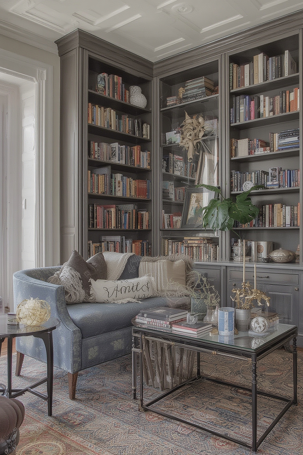 • ✅ Books and décor styled with cohesive color groups and greenery.