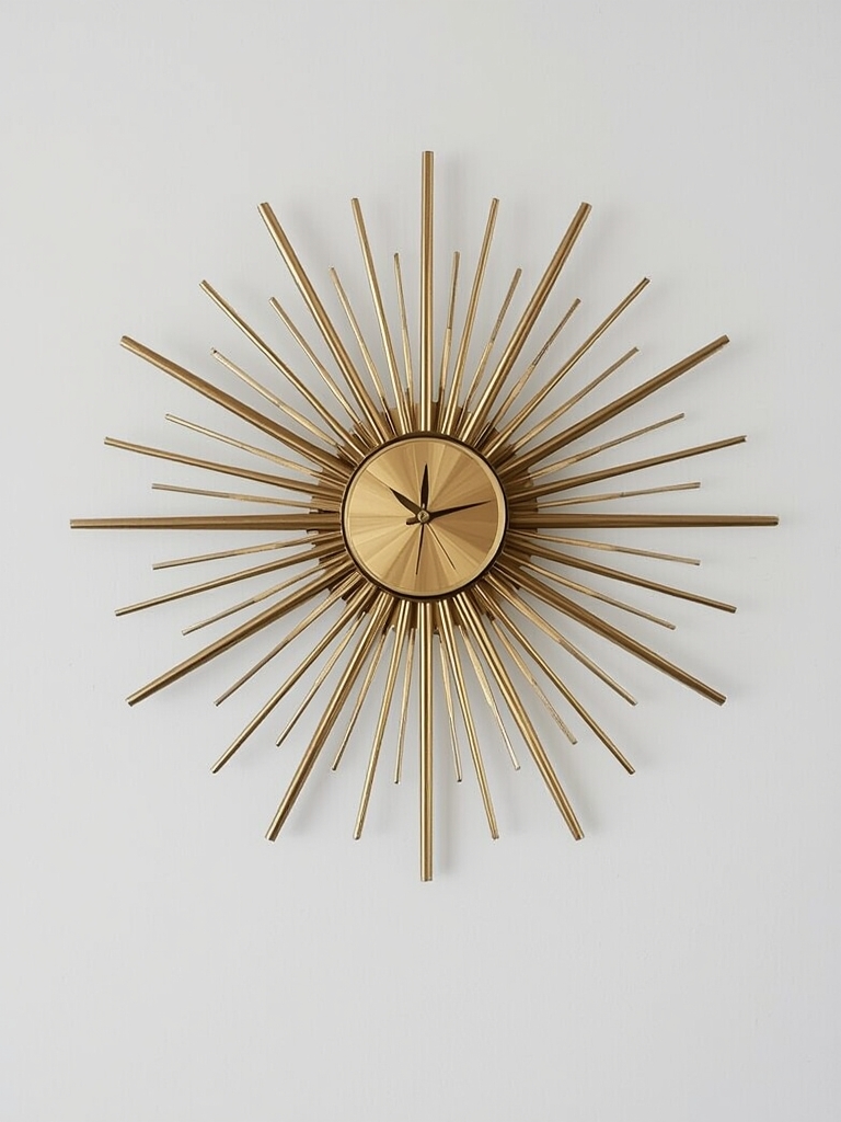 Data from the Pantone Color Institute (2024) indicates that “Digital Lavender” and “Verdigris” are trending. Pair a brass starburst clock with soft lavender walls or teal accents for a modern yet retro feel.