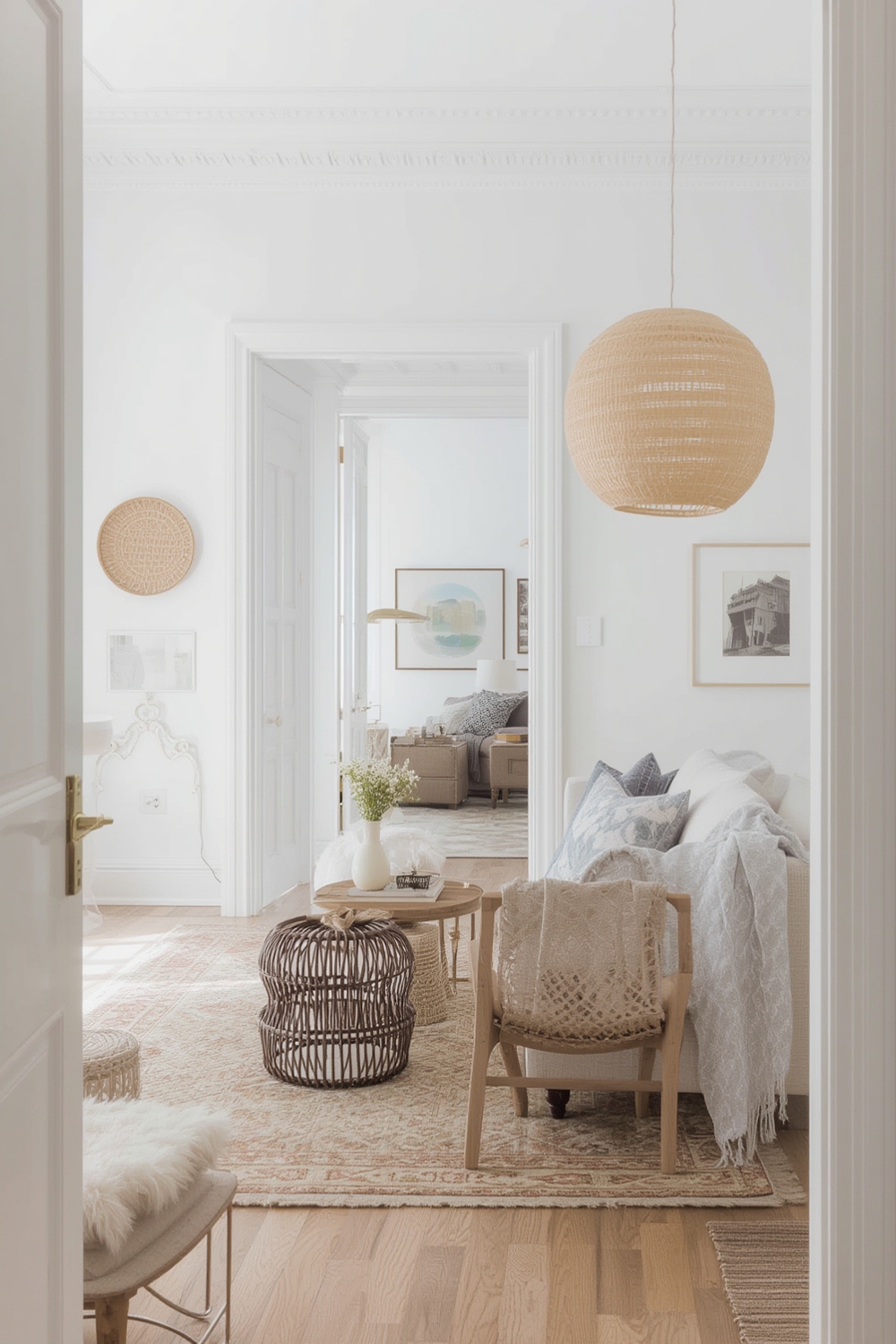 1. Choose a base color: Paint walls in a soft white (e.g., Sherwin‑Williams “Alabaster”).