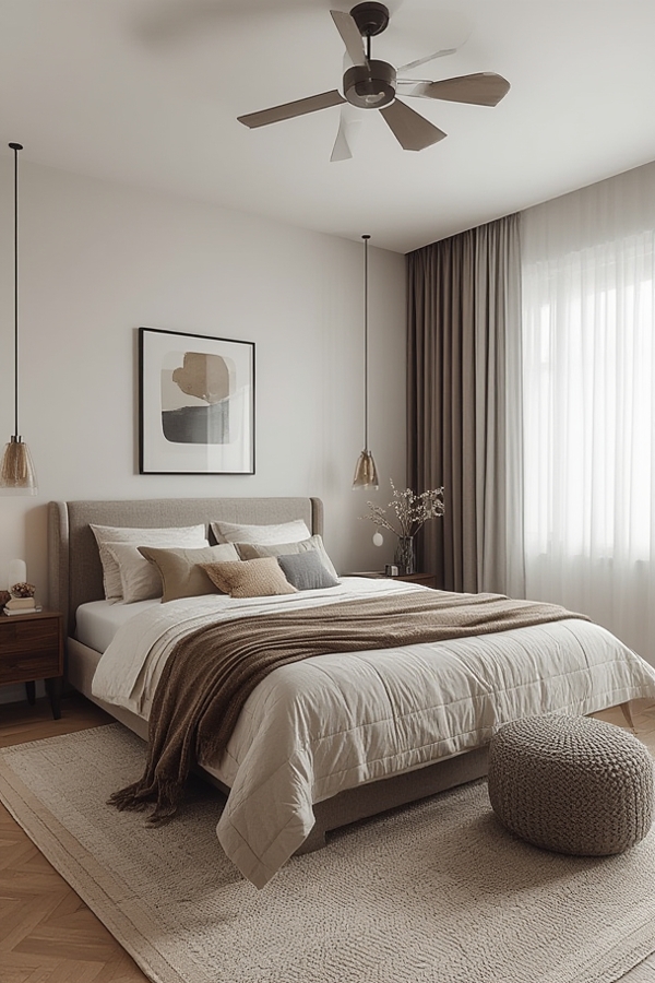 Integrate built‑in closets with sliding doors or floating shelves. Use woven baskets for accessories; they add warmth while keeping surfaces tidy.