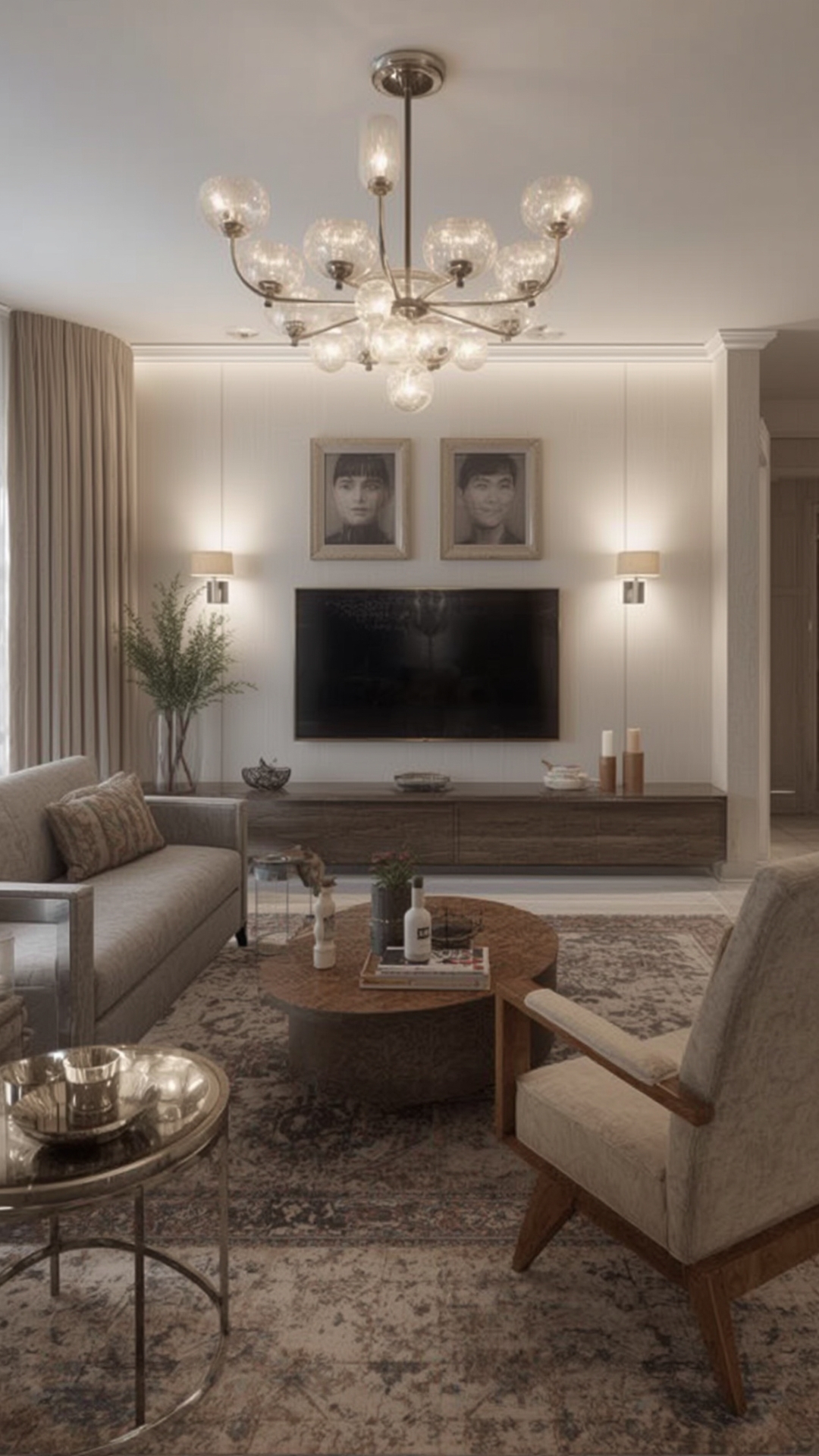 - Furniture scale: Choose low‑profile sofas and a coffee table that sit beneath the light’s radius, preserving sight lines.