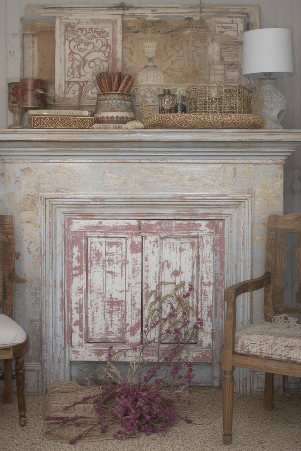 • Monochrome palette: Use varying shades of the same hue (e.g., soft greys) across multiple distressed items for a cohesive vibe.