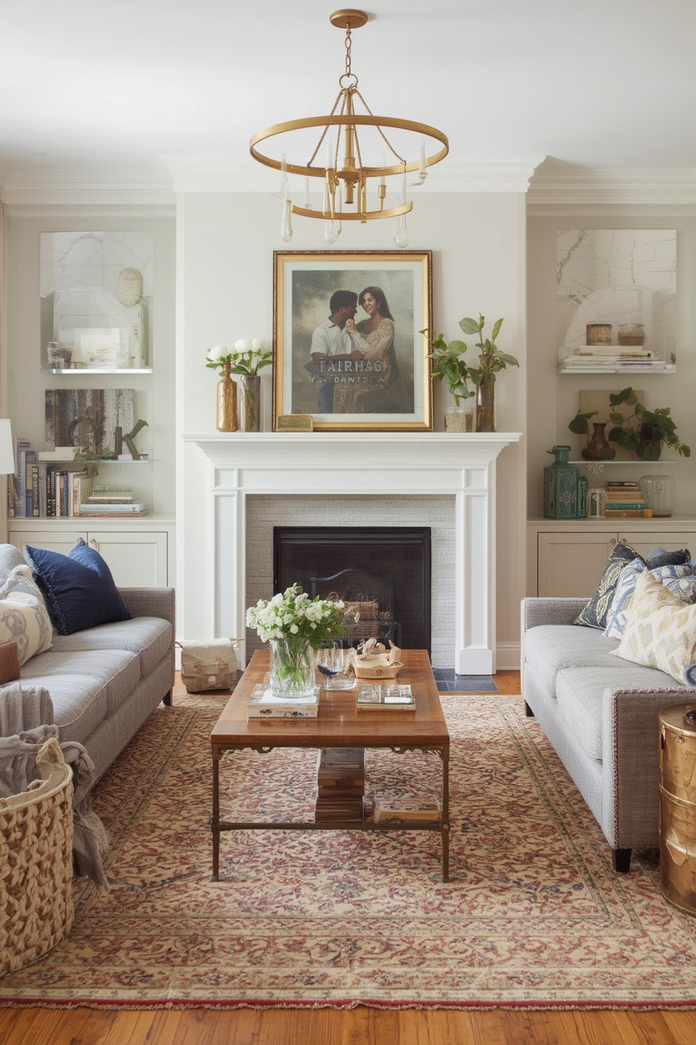 • Action: Place a low coffee table at the center, flank it with a floor lamp, and add a reading nook using a comfortable armchair and a side table.