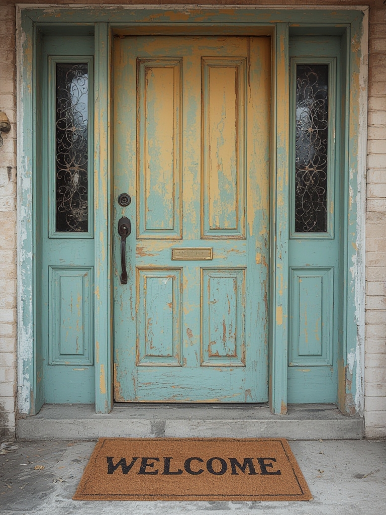 - Choose a door with a natural grain pattern for a rustic look; a painted door works well for modern aesthetics.