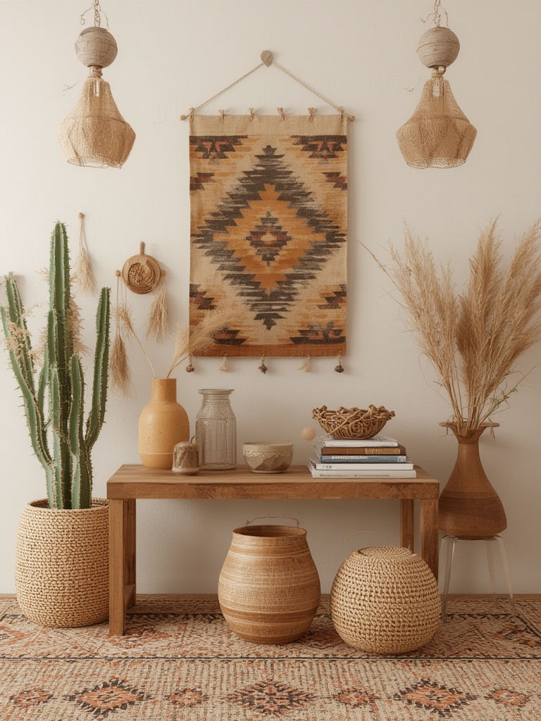 Incorporate reclaimed wood furniture, hand‑crafted pottery, and woven jute or sisal rugs. These textures add tactile richness and reinforce the desert‑inspired narrative.