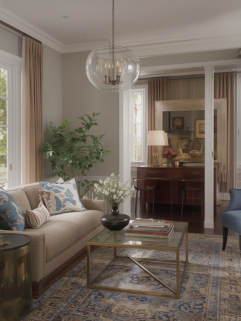 Pair a traditional, upholstered sofa with sleek, low‑profile coffee tables. Look for clean lines on modern pieces and subtle detailing on classic items. This juxtaposition keeps the space from feeling too formal or too casual.