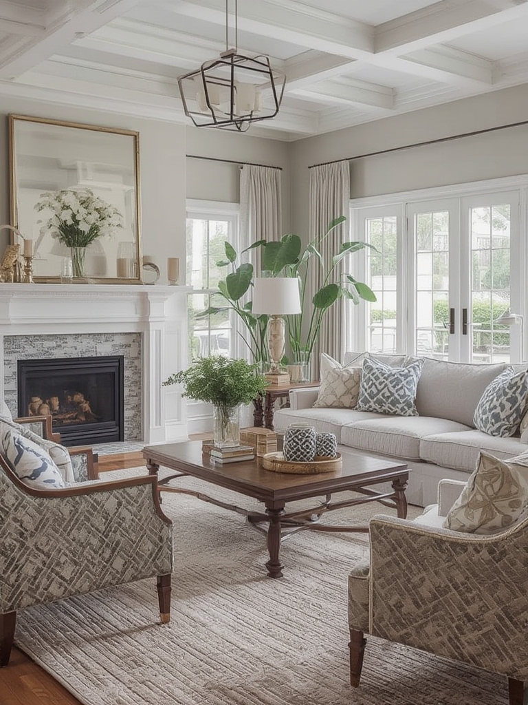 - Rug: Place a natural‑fiber rug (jute or sisal) under the coffee table to anchor the seating area.