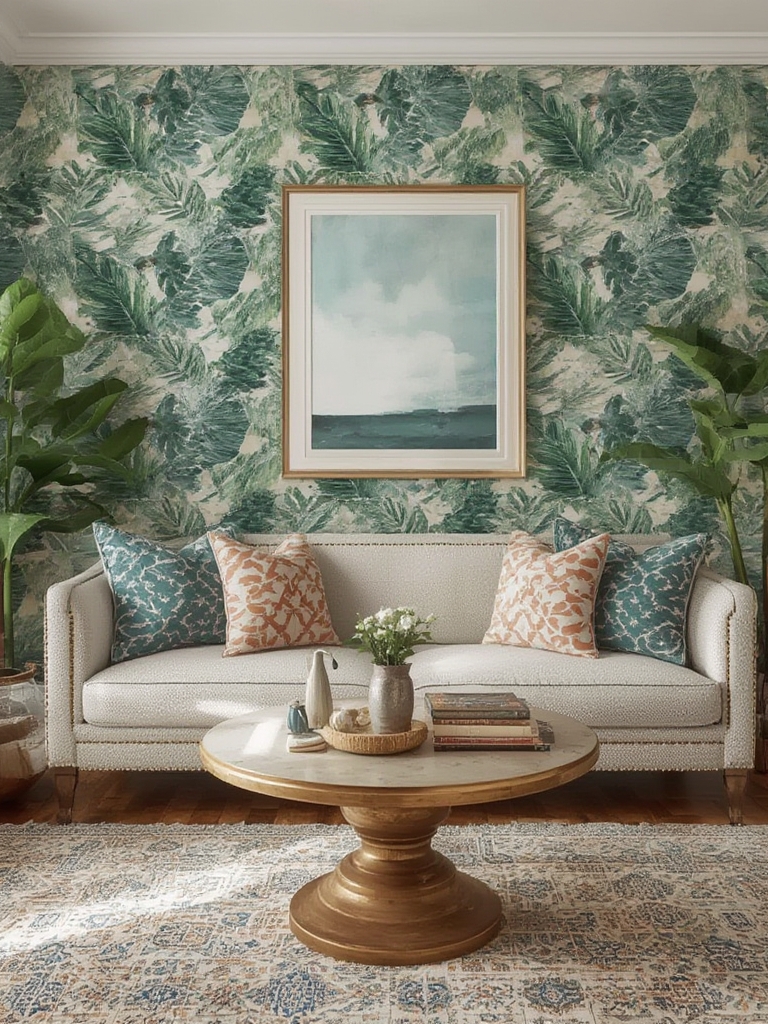 - Cushions & throws: Choose fabrics with leaf patterns in complementary colors (emerald, teal, or mustard).